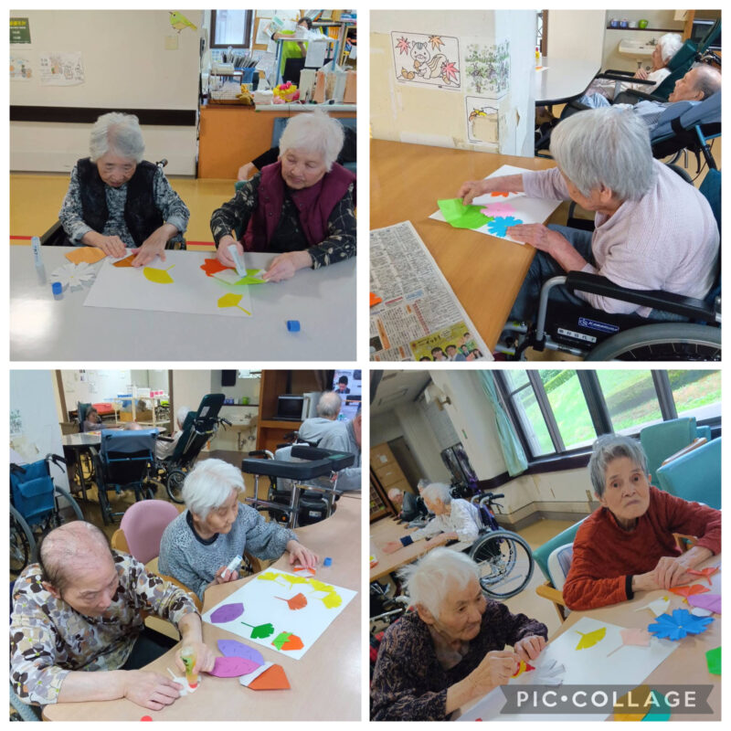 10月生まれの利用者様のお誕生会を開催しました。皆様でお祝いした後、秋をテーマにした貼り絵制作を行いました。落ち葉や紅葉を折り紙で切り取り画用紙に貼り付け楽しみました。🍂🍁。
