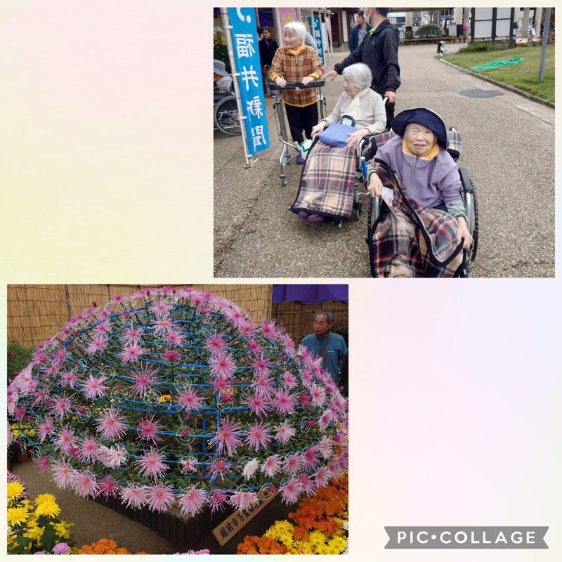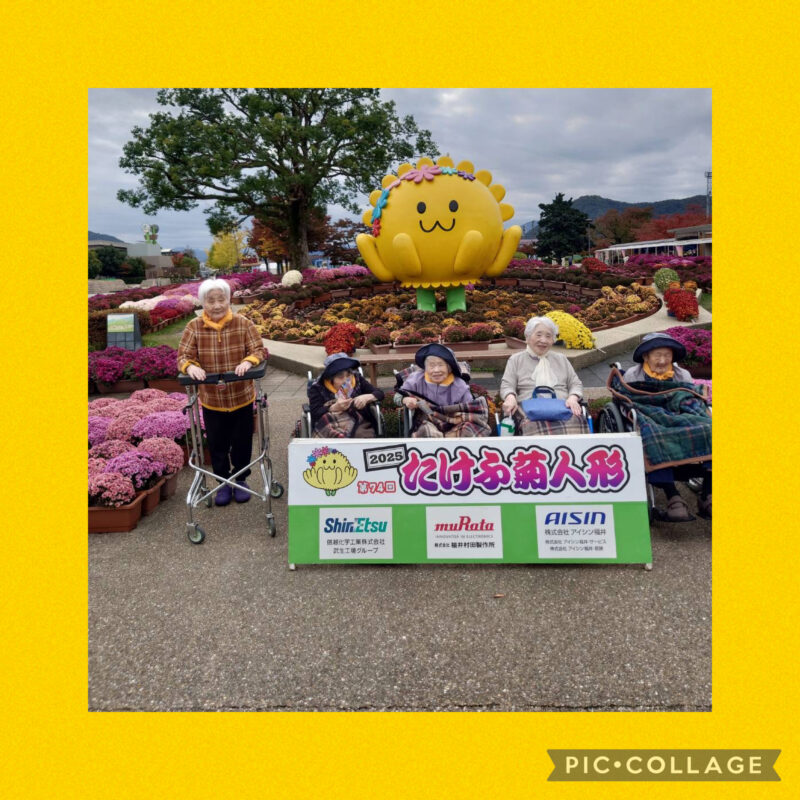 利用者の方数名と一緒に遠出をして武生菊人形へ出かけました。会場には、色とりどりの菊の花が見事に咲誇り、皆さん「キレイやね」「こんなにたくさん咲いてるの初めて見たわ」と笑顔いっぱい😆