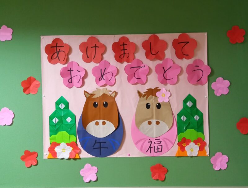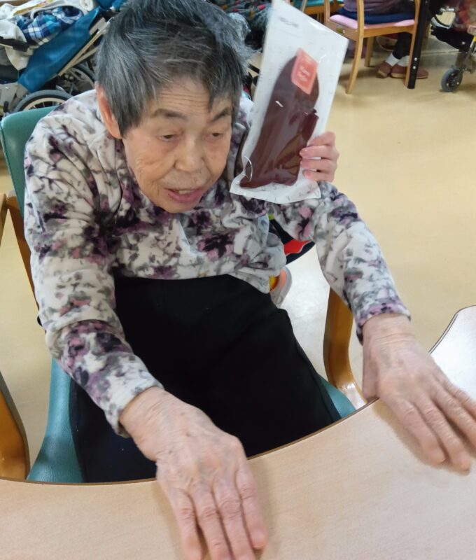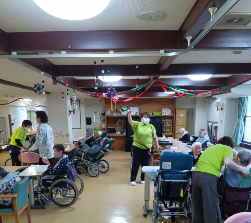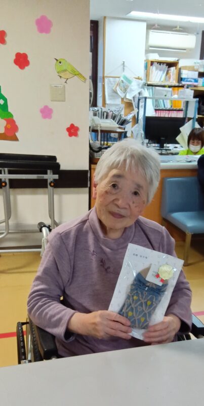 新年、明けましておめでとうございます。皆様、健やかに新春をお迎えのこととお慶び申し上げます。さて、当施設では元旦に新年の祝いとしてお神酒(甘酒)で賑やかに乾杯しました。祝いのプレゼントとして靴下をお渡し喜んで頂きました。プレゼントを手に取って喜んでいらっしゃる皆様の姿を拝見し、私達職員も暖かい気持ちで新年をスタートすることができました。本年も、皆様が毎日笑顔で健やかにすごせるよう、スタッフ一同心を込めてお手伝いさせて頂きます。本年もどうぞよろしくお願い申し上げます。