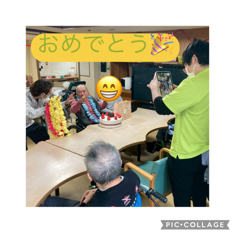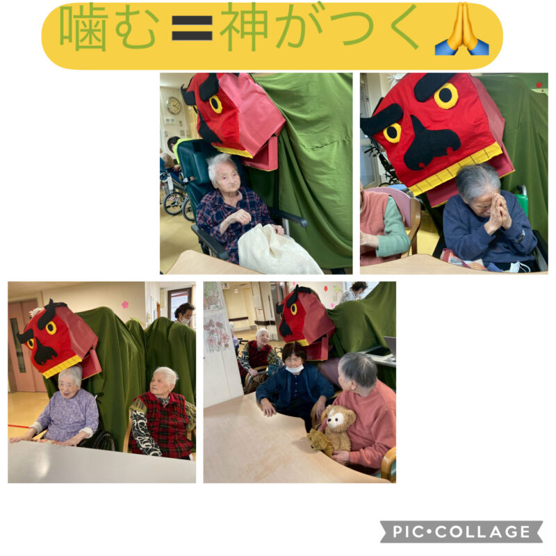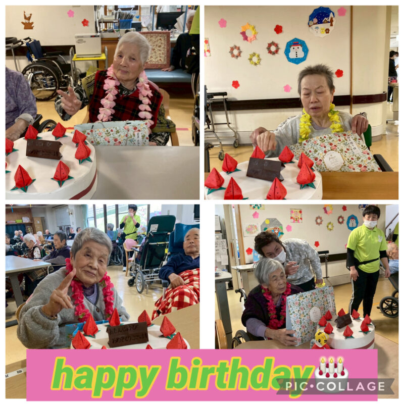 12月、1月生まれの方の合同誕生会を行いました。会の途中で突然、獅子舞が登場し皆様びっくり‼️