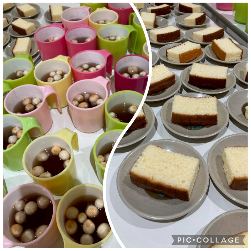その後は、カステラとお餅の代わりとして麩を入れたおやつを召し上がっていただき、笑顔あふれるひとときとなりました。これからの一年も健やかにお過ごしいただけますょう職員一同願っております。